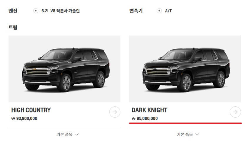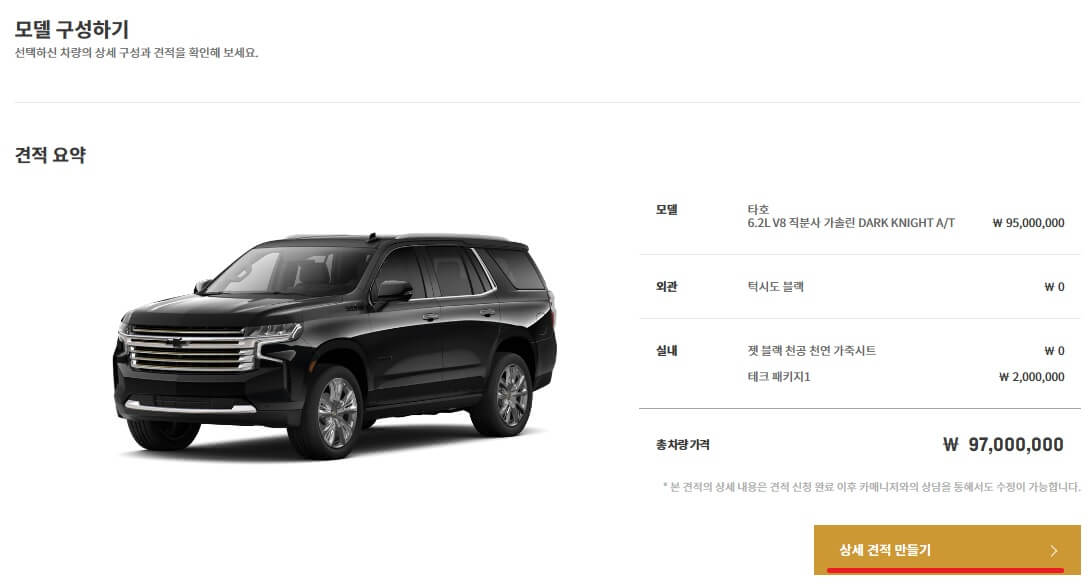 재미로 해보는 '온라인 견적'이니 저는 가장 비싼 타호로 진행할게요.