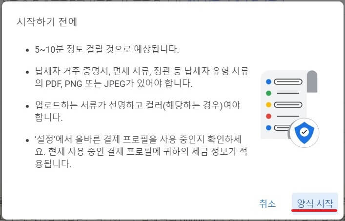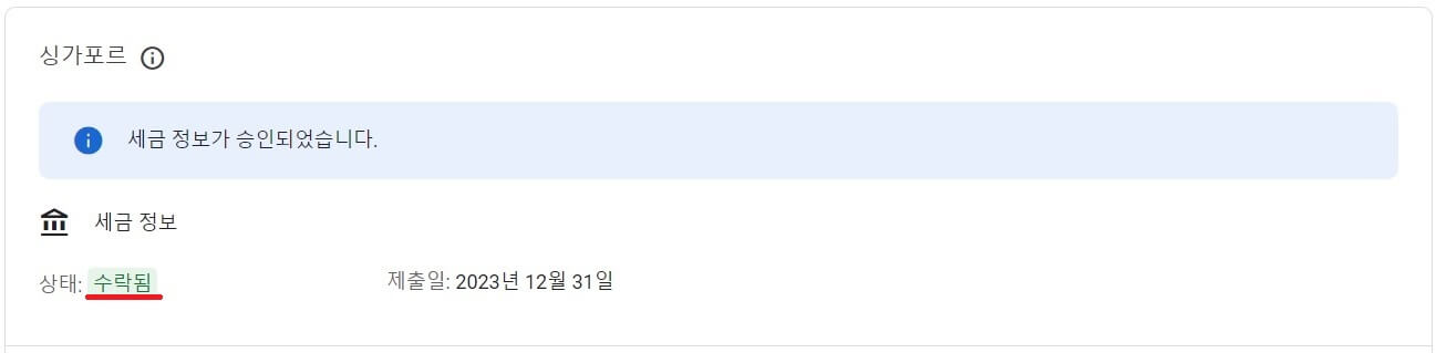 마지막으로 상태가 '수락됨'으로 되었다면 세금 정보가 승인된 것입니다.