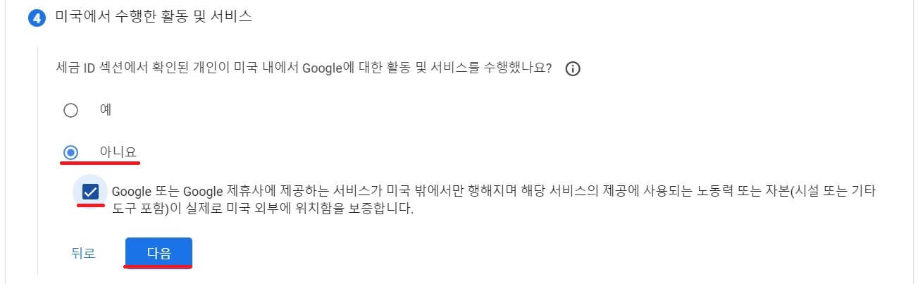 미국에서 활동 수익이 있는지 물어보는 것이기 때문에 있으시면 '예' 아니라면 '아니요' 하세요.