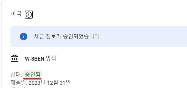 세금 정보가 승인되었습니다.