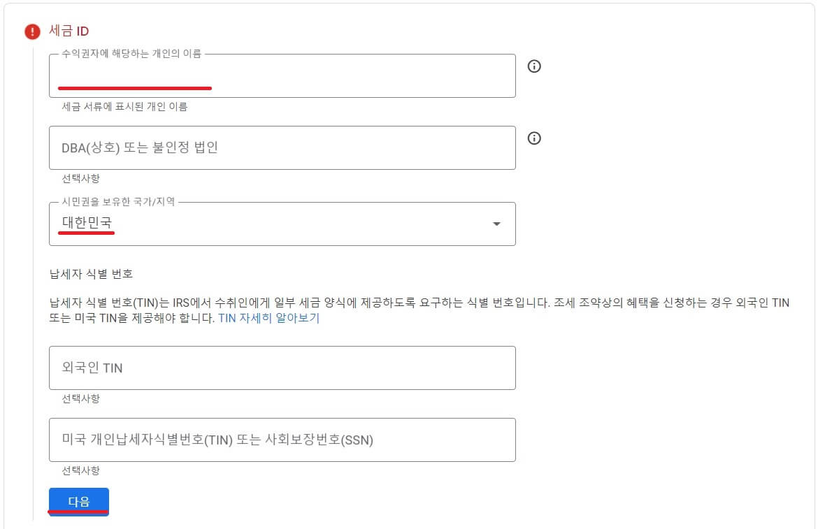 세금 ID를 입력하실 순서인데요.