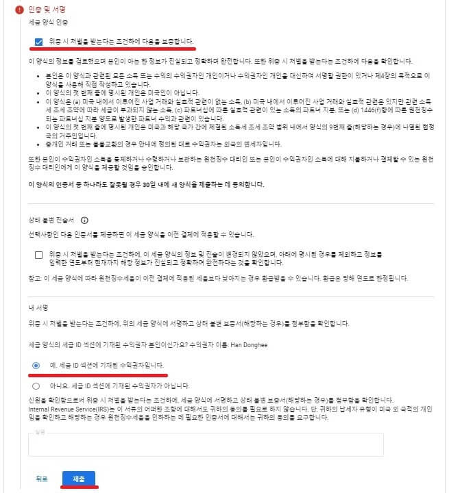 이제 마지막 단계입니다. '제출' 하시면 끝입니다.