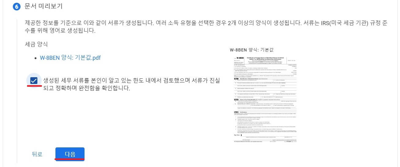 미국 시민 또는 거주자이시면 아래 그 외는 위로 해주시면 됩니다. 'W-8BEN 양식으로 이동' 해주세요.