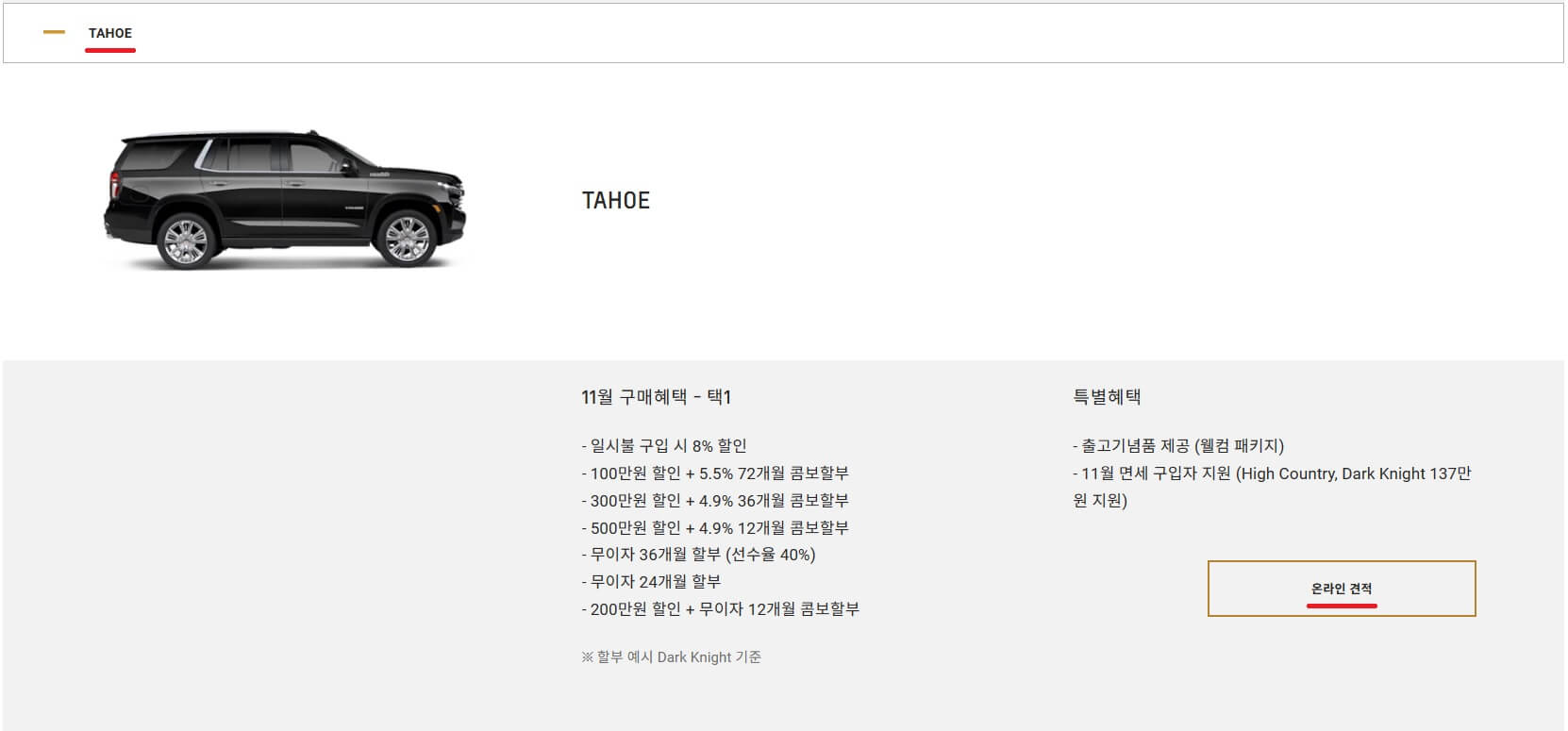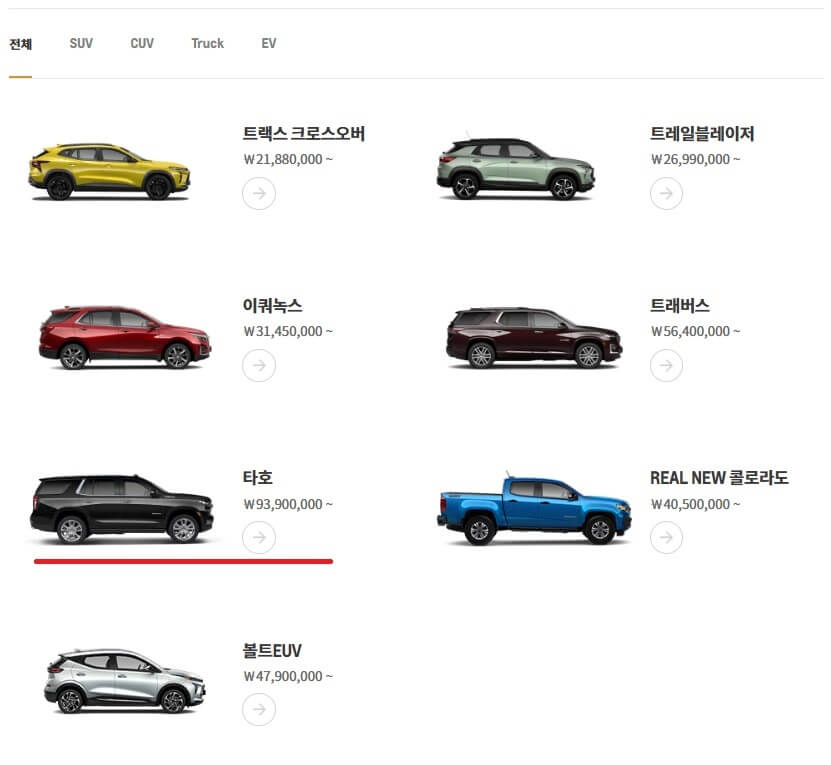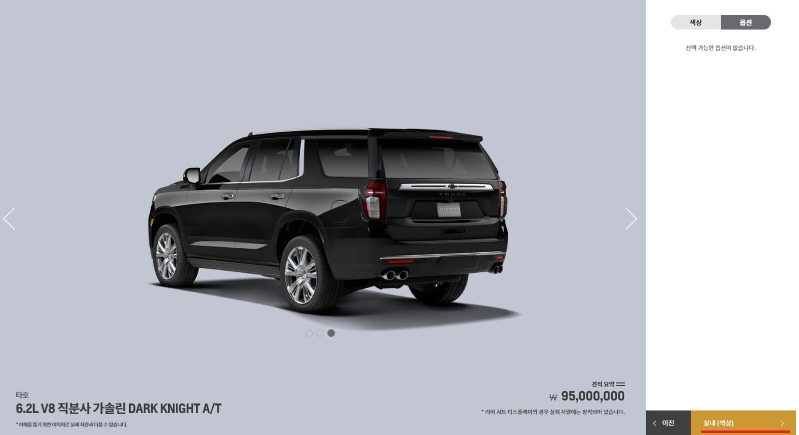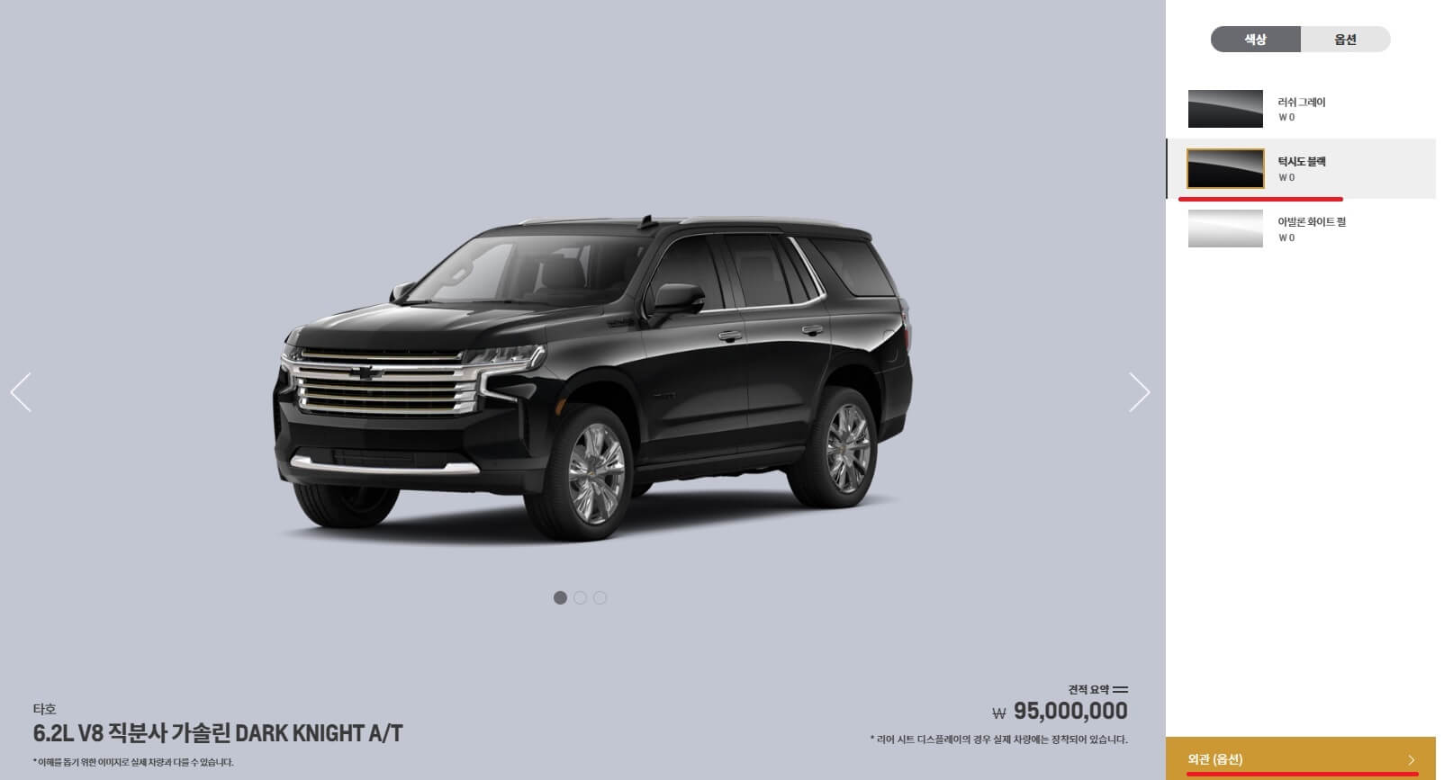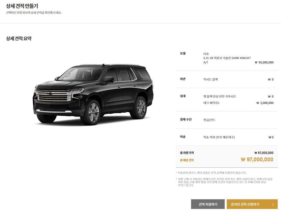 재미로 해보는 '온라인 견적'이니 저는 가장 비싼 타호로 진행할게요.