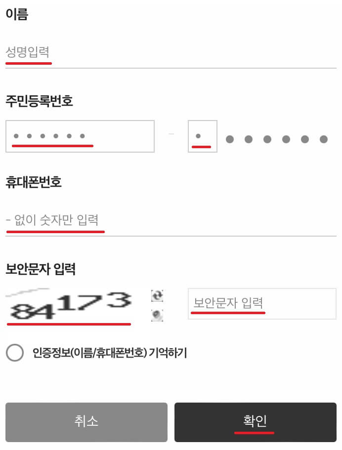 '휴대폰 번호로 본인인증하기'를 해주셔야 합니다.