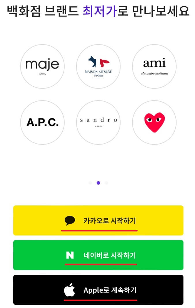 간편하게 '카카오', '네이버', '애플'로 시작하시면 편합니다.