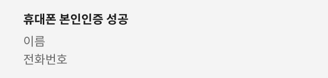 휴대폰 본인인증 성공이라는 메시지가 떴습니다.