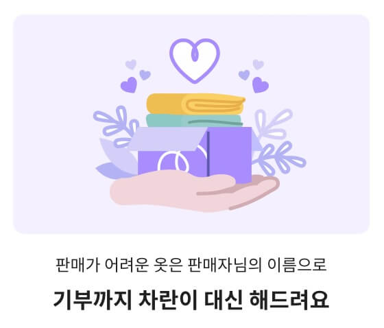 판매가 어려운 옷은 판매자님의 이름으로 기부도 합니다. 물론, 판매자의 동의를 구합니다.
