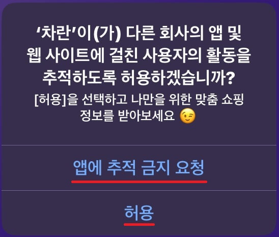 '앱에 추적 금지 요청'과 '허용' 중에 선택하실 수 있습니다.