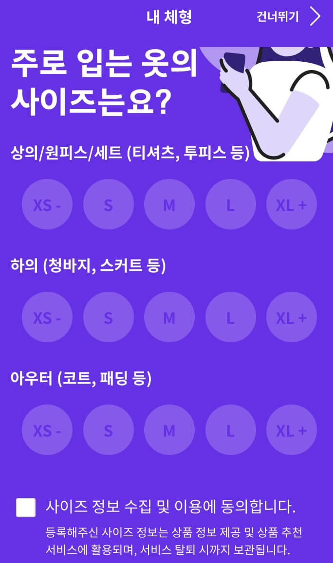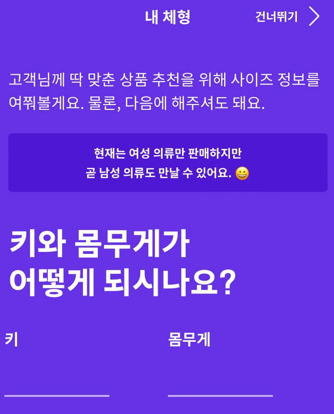 개인적으로 등록을 해놓고 옷을 편하게 고르기 위함이니, 불편하시면 '건너뛰기' 해주시면 됩니다.