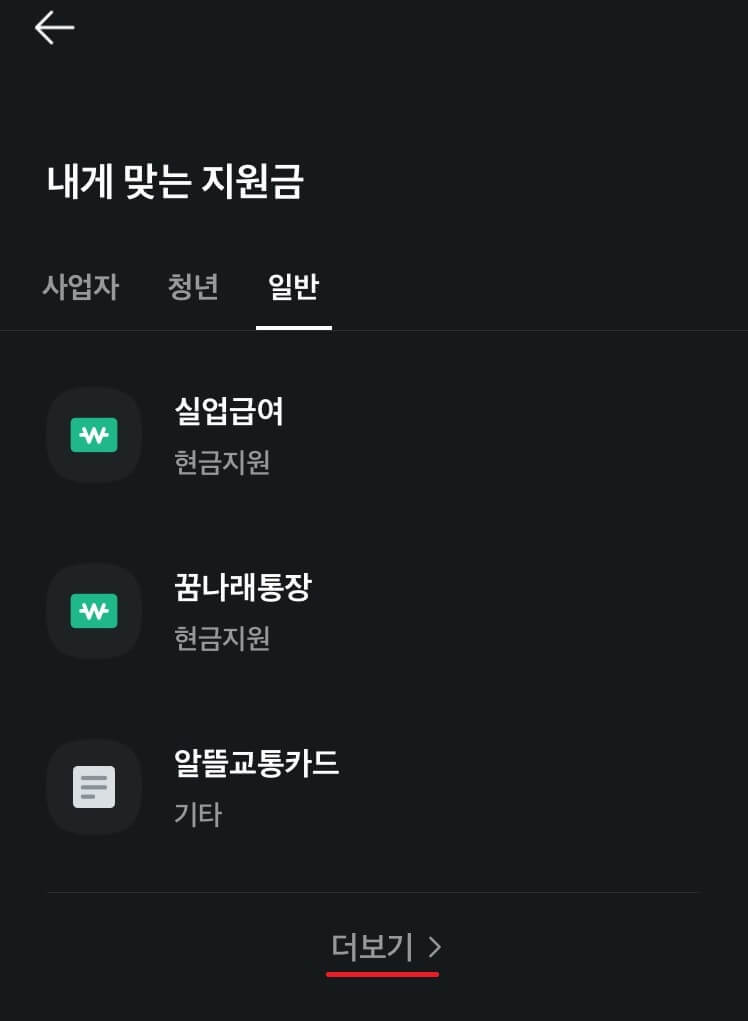 아래쪽으로 조금 스크롤해 주시면 '돈 되는 정책지원금' 항목이 보이십니다.