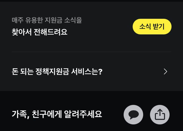 카카오톡 카카오페이 돈 되는 정책지원금 알림 받기