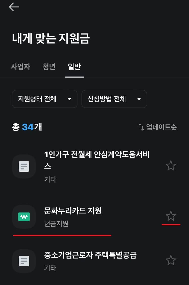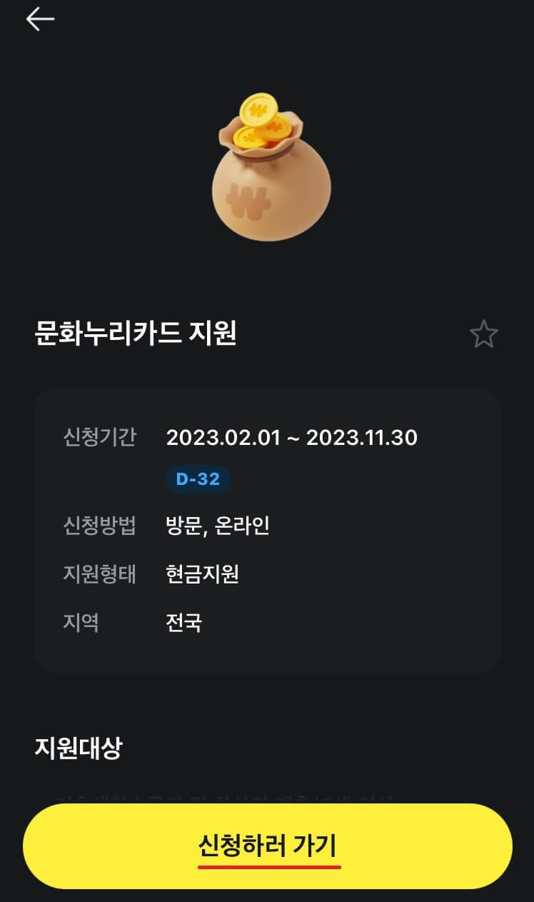 예를 들어 '문화누리카드 지원'으로 신청을 진행해 보도록 하겠습니다.