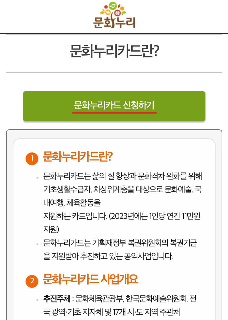 '문화누리카드 신청하기'를 눌러 지원금마다의 순서대로 신청을 진행해 주시면 되십니다.