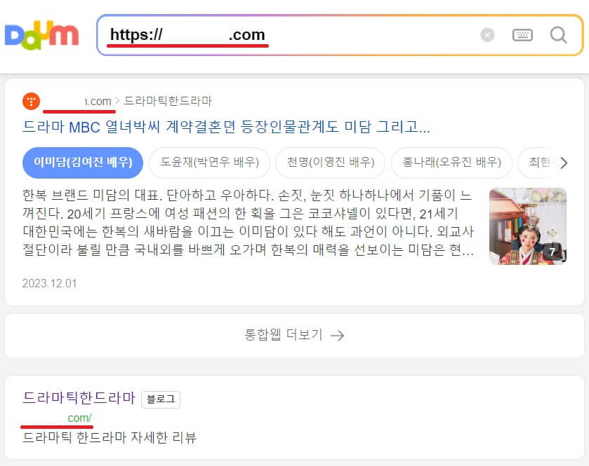 다음 검색창에서 https://도메인.com 을 검색해 보세요.